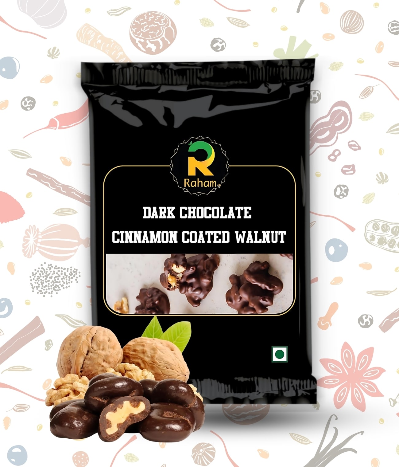 - Rich Dark Chocolate and Warm Cinnamon: Coated with dark chocolate and dusted with cinnamon.